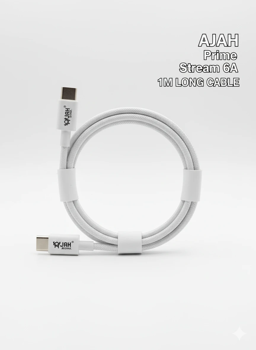 JAH Prime Stream — 6A Type-C to Type-C Cable (1 Meter)1M Length 6A Fast Charge Highlights