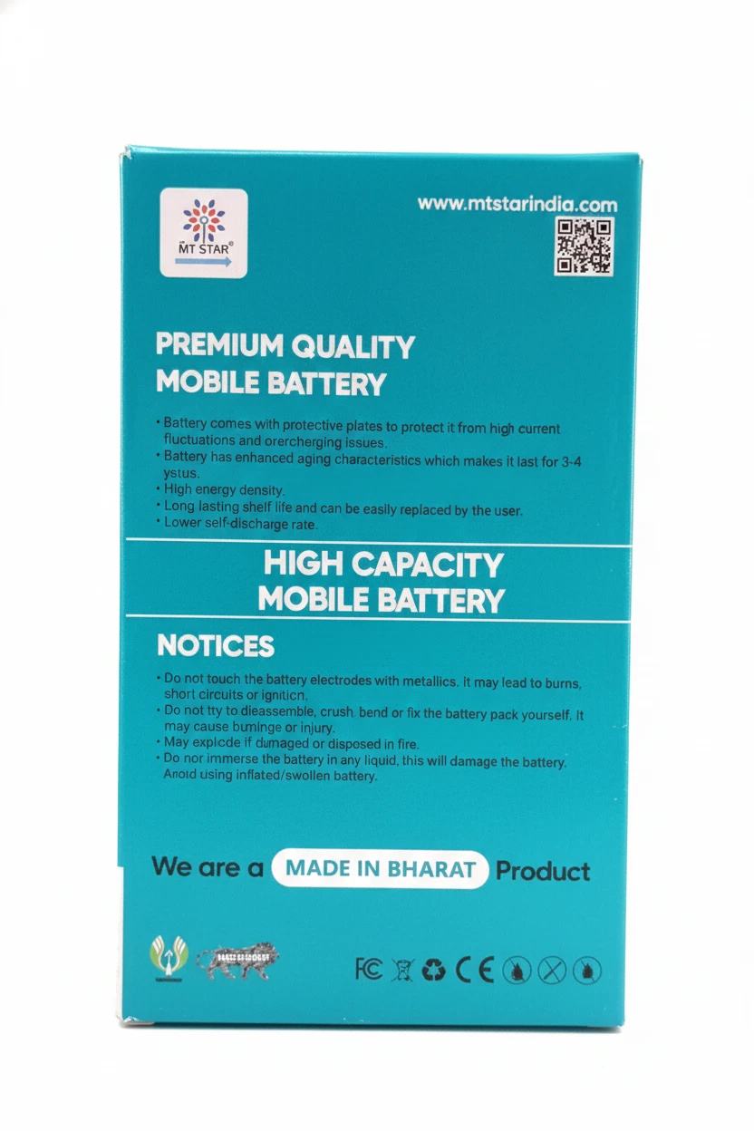 Product Description:Apne mobile phone ki life badhayein MT STAR Premium Series BLP809 battery ke saath. Yeh high-quality Li-ion Polymer battery khaas taur par lambi performance aur safety ke liye design ki gayi hai. Ismein controlling switches aur temperature fuse diya gaya hai jo ise overheating aur overcharging se bachata hai. "Made in Bharat" hone ke naate, yeh ek bharosemand aur durabe product hai. Product Specifications (Details):