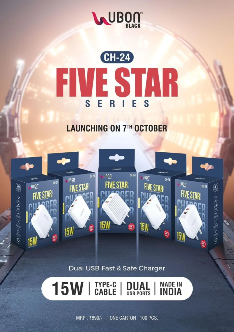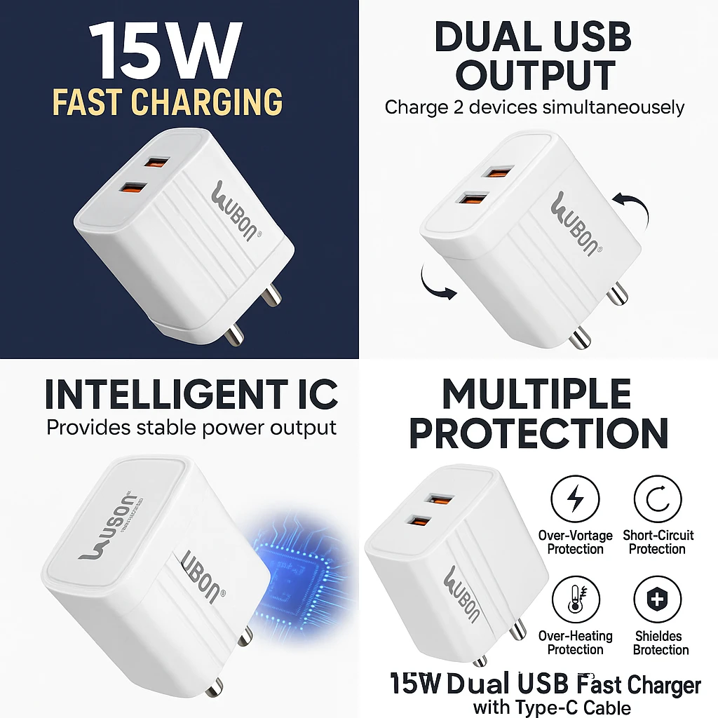 1. Product Title (SEO Friendly)UBON Black CH-24 Five Star Series 15W Dual USB Fast Charger with Type-C Cable ✅ 2. SKU CodeSKU: UB-CH24-15W-WHITE ✅ 3. Category Mapping