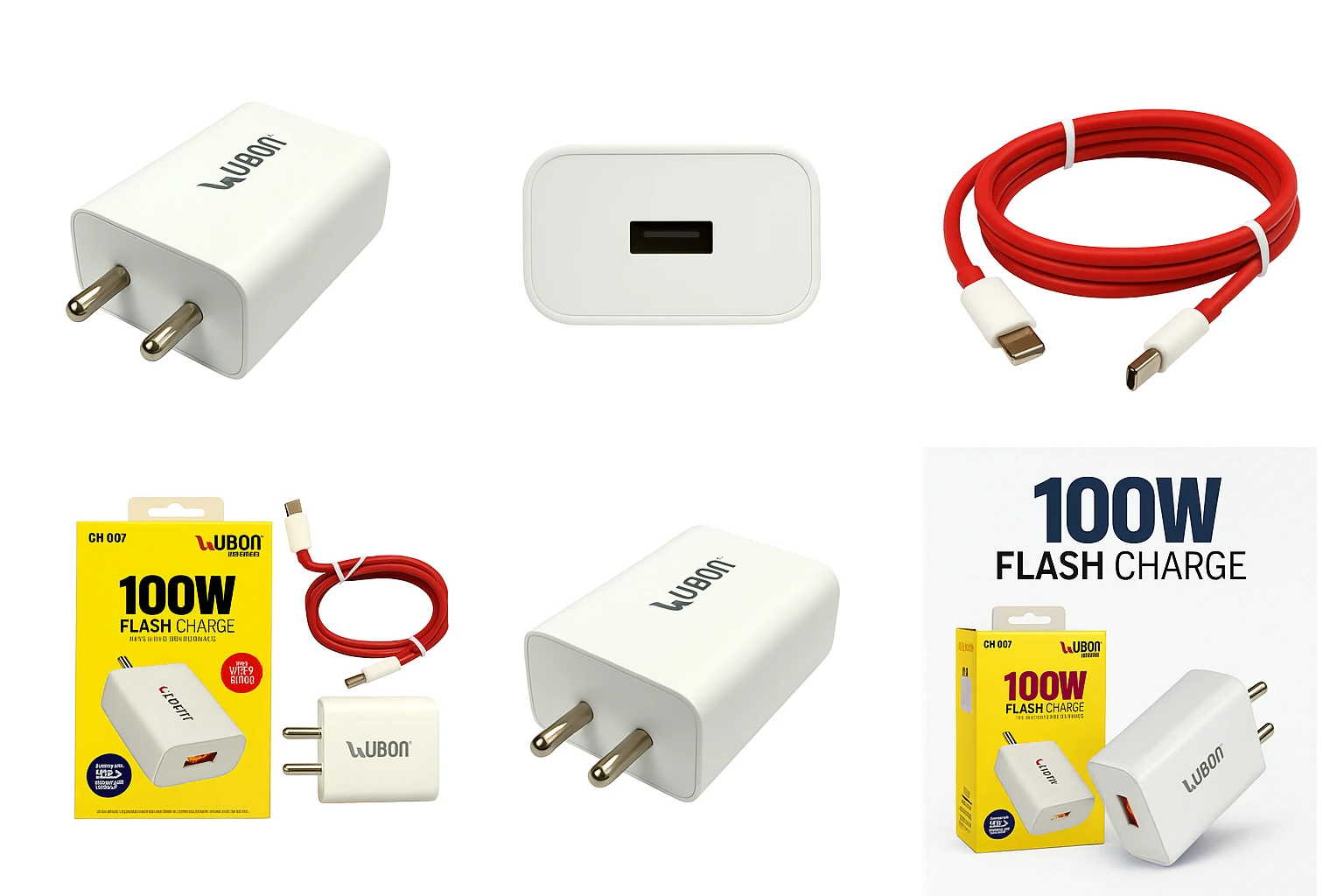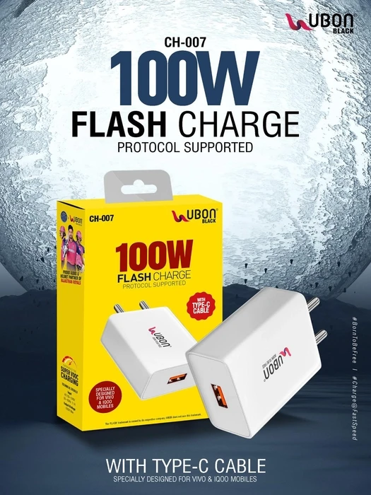 ⭐ Product Highlights ⚡ 100W Ultra Fast Flash Charging 🔥 Flash Charge Protocol Supported 🔌 Includes High-Quality Type-C Cable 📱 Specially Optimized for Vivo & iQOO Smartphones 🔰 Advanced Protection: OVP, OCP, SCP 🧳 Compact, Durable & Travel Friendly Design 🇮🇳 Made in India 📘 Technical Specifications Charger Details Feature Specification Brand UBON Black Model CH-007 Output Power 100W Flash Charge Input AC 100-240V, 50/60Hz, 1.1A Output 100W Max Output Port USB-A Flash Charge Port Flash Protocol Supported (as per device compatibility) Material Premium ABS Fire-Resistant Body Safety Features Over-Voltage, Over-Current, Short-Circuit Protection Color White Made In India Included Cable Feature Specification Cable Type USB-A to Type-C Cable Length 1 Meter Build Type High-Quality Flash-Supported Cable Compatibility Vivo/iQOO/Android Devices 📦 Package Contents 1 × UBON 100W Flash Charger (CH-007) 1 × Flash-Supported Type-C Cable 💡 Key Benefits 🚀 Charge Smartphone from 0–100% in very less time 🔥 High-powered Flash Charge technology 🔌 Perfect for gaming & heavy phone users 🌍 Ideal for Home, Car, Office & Travel Use 🛡️ Safety IC ensures smart power delivery 📝 Product Description UBON CH-007 100W Flash Charge is engineered for users who demand extreme charging speed with maximum safety. Designed especially for Vivo & iQOO devices, this charger supports Flash Protocol, delivering lightning-fast power without damaging the battery. Its compact size, strong build quality, and advanced IC protection make it a dependable choice for everyday use. The included Type-C cable ensures smooth, stable, and efficient power delivery. |