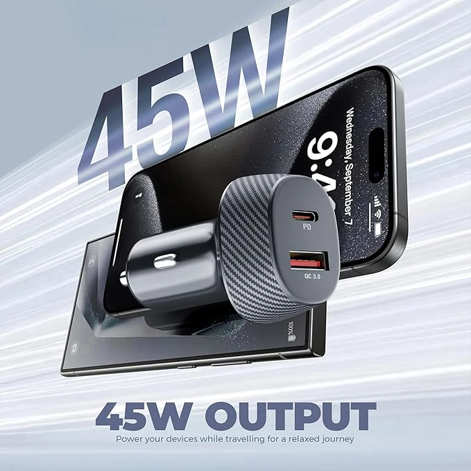 UBON CH57 Dual Output 45W Fast Car Charger | Type-C PD + USB QC 3.0 | Compact & Safe (Black) 🧾 Short Product DescriptionPower up your devices on every drive with the UBON CH57 Dual Output Fast Car Charger. Featuring 45W super-fast charging with Type-C PD & USB QC 3.0, this compact charger lets you charge two devices simultaneously—fast, safe, and reliable. ⚡ Key Highlights