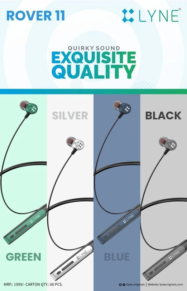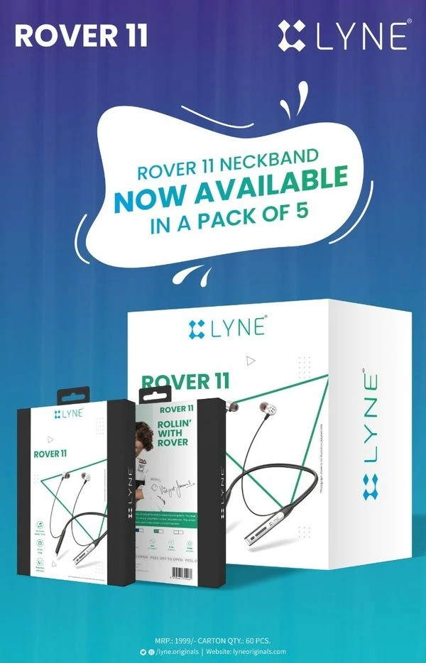 Elevate Your Music Journey: Lyne Rover 11 Neckband with 40 Hours Playtime – Assorted Colors, 6-Month Warranty Embark on a musical adventure with the Lyne Rover 11 Neckband, offering an extraordinary 40 hours of playtime on a single charge. With magnetic buds for secure storage and convenient access, along with dual pairing capability and powerful 10mm drivers, this neckband delivers a dynamic and immersive listening experience. Enjoy seamless connectivity with a coverage range of 10m, allowing you to move freely while staying connected to your music. Available in assorted colors to suit your style, and backed by a 6-month warranty for added peace of mind, the Lyne Rover 11 Neckband is your perfect companion for all-day music enjoyment Uninterrupted Music Experience: Lyne Rover 11 Neckband (40 Hours Playtime) Immerse yourself in a world of uninterrupted music with the Lyne Rover 11 Neckband. With an impressive 40 hours of playtime, magnetic buds for easy storage, dual pairing capabilities, powerful 10mm drivers, and a wide coverage range of up to 10 meters, this neckband is designed to redefine your listening experience. #### **Key Features:** 1. **Extended Playtime:**  – *Music All Day:* With an incredible 40 hours of playtime on a single charge, the Lyne Rover 11 ensures that your music never stops. Enjoy continuous playback for extended periods without the need for frequent recharging. 2. **Magnetic Buds:**  – *Convenient Storage:* The magnetic buds of the Lyne Rover 11 allow for easy and tangle-free storage when not in use. Simply snap the buds together around your neck when taking a break from your music, ensuring they stay securely in place. 3. **Dual Pairing:**  – *Connect Two Devices:* Seamlessly switch between two paired devices with the Lyne Rover 11’s dual pairing feature. Effortlessly connect to your smartphone and tablet simultaneously, allowing you to stay connected without missing a beat. 4. **Powerful 10mm Drivers:**  – *Immersive Sound:* Experience immersive sound quality with the Lyne Rover 11’s powerful 10mm drivers. Enjoy deep bass, clear vocals, and crisp highs, delivering an exceptional audio experience across a wide range of genres. 5. **Wide Coverage Range:**  – *Stay Connected:* With a coverage range of up to 10 meters, the Lyne Rover 11 ensures a stable and reliable connection to your paired devices. Move freely without worrying about signal loss or interruptions to your music. 6. **Comfortable and Lightweight Design:**  – *All-Day Comfort:* Designed for comfort, the Lyne Rover 11 features a lightweight and ergonomic neckband that sits comfortably around your neck. The soft earbuds provide a snug fit, perfect for long listening sessions. 7. **Built-in Controls:**  – *Easy Operation:* Control your music, adjust the volume, and take calls with ease using the built-in controls of the Lyne Rover 11. Stay connected and in control without having to reach for your device. #### **Why Choose Lyne Rover 11 Neckband?** – **Exceptional Playtime:** Enjoy an incredible 40 hours of uninterrupted music playback. – **Convenient Magnetic Buds:** Store your neckband easily with magnetic buds for tangle-free storage. – **Dual Pairing:** Seamlessly switch between two connected devices for added convenience. – **Powerful Sound:** Experience immersive sound quality with powerful 10mm drivers. – **Wide Coverage Range:** Stay connected with a stable Bluetooth connection up to 10 meters away. Elevate your music listening experience with the Lyne Rover 11 Neckband. Enjoy uninterrupted music playback, powerful sound, and convenient features for an immersive audio experience. Order now and take your music on the go. *Lyne – Redefining Wireless Audio. |