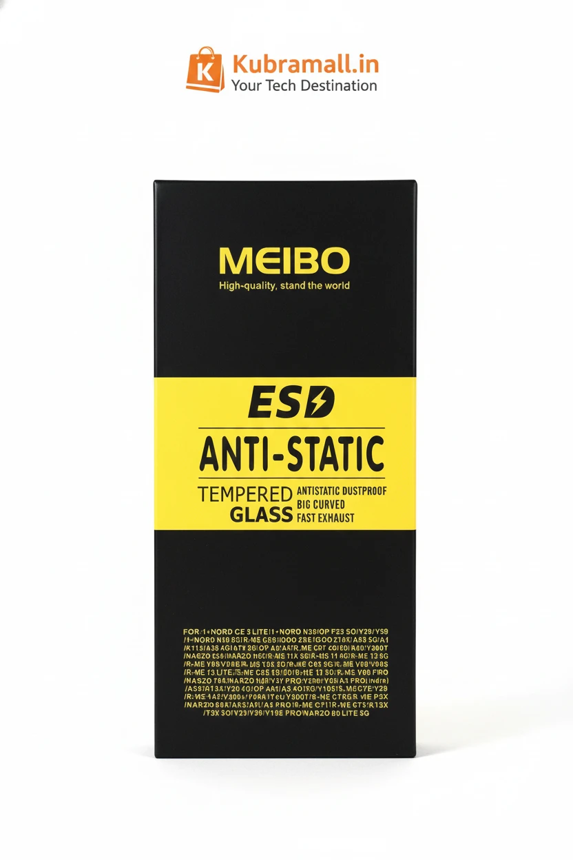 📌 Product DescriptionExperience premium screen protection with the MEIBO ESD Anti-Static Tempered Glass, engineered with advanced ESD (Electro-Static Discharge) technology for superior durability and anti-dust performance. Its big curved edge-to-edge fit provides full-screen coverage while maintaining smooth touch sensitivity. Ideal for users who want high clarity, premium edge protection, anti-static dustproof coating, and long-lasting durability. 📌 Key Features✔ ESD Anti-Static Layer – Prevents dust attraction during installation ✔ Big Curved Design – Full-screen edge-to-edge fit ✔ Fast Exhaust – Bubble-free installation ✔ High Transparency – Maintains original display quality ✔ Scratch Resistant – Protects from daily wear & tear ✔ Smooth Touch Response – Ideal for gaming & everyday use ✔ Tempered Glass Protection – Enhanced durability & safety 📌 Supported Models (Clean & Proper Format)This tempered glass is compatible with the following models: OnePlus:
