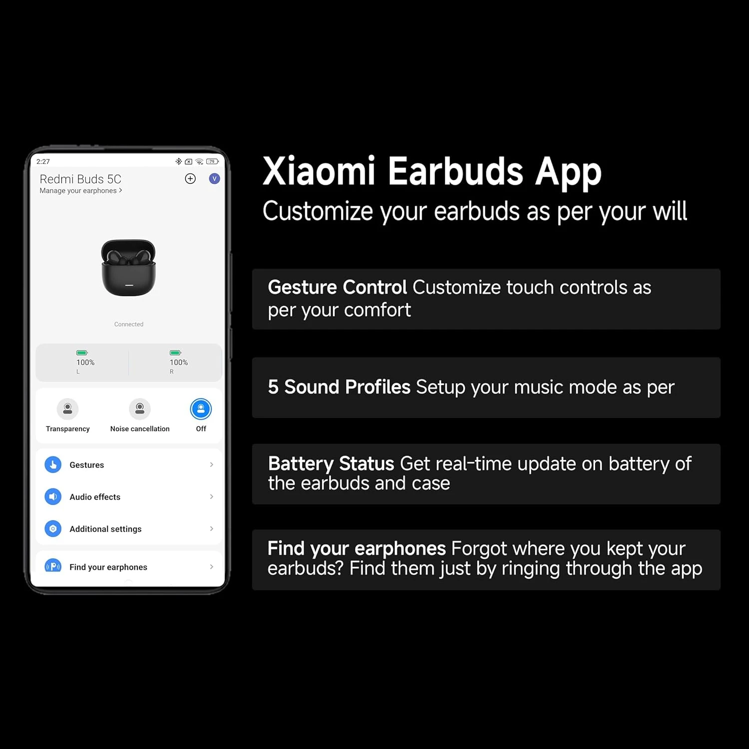 ✅ What’s in the Box✔ 1 × Redmi Buds 5C Earbuds ✔ 1 × Charging Case ✔ 1 × Extra Eartips ✔ 1 × User Manual What is in the box?Eartip User Manual From the manufacturer