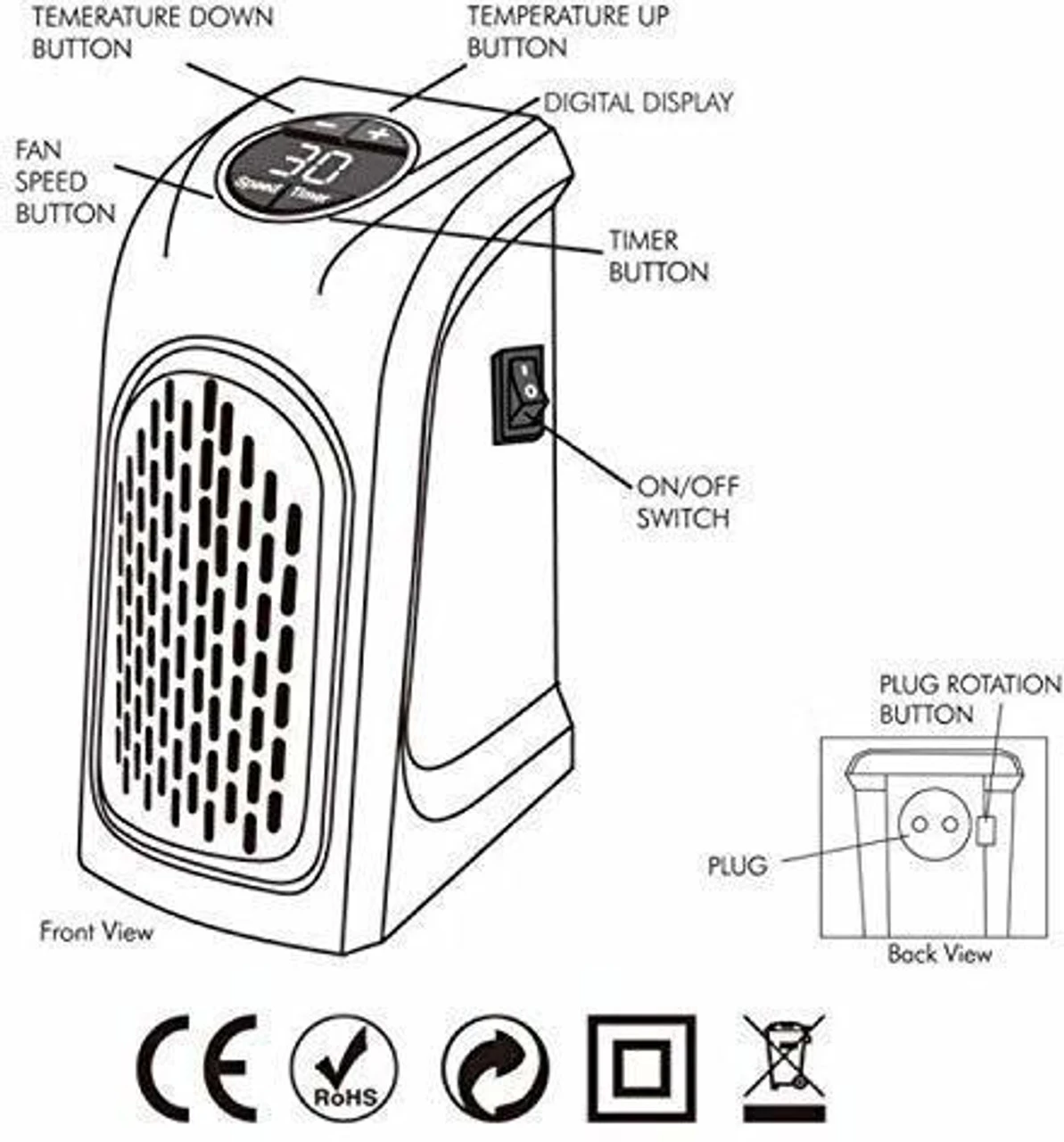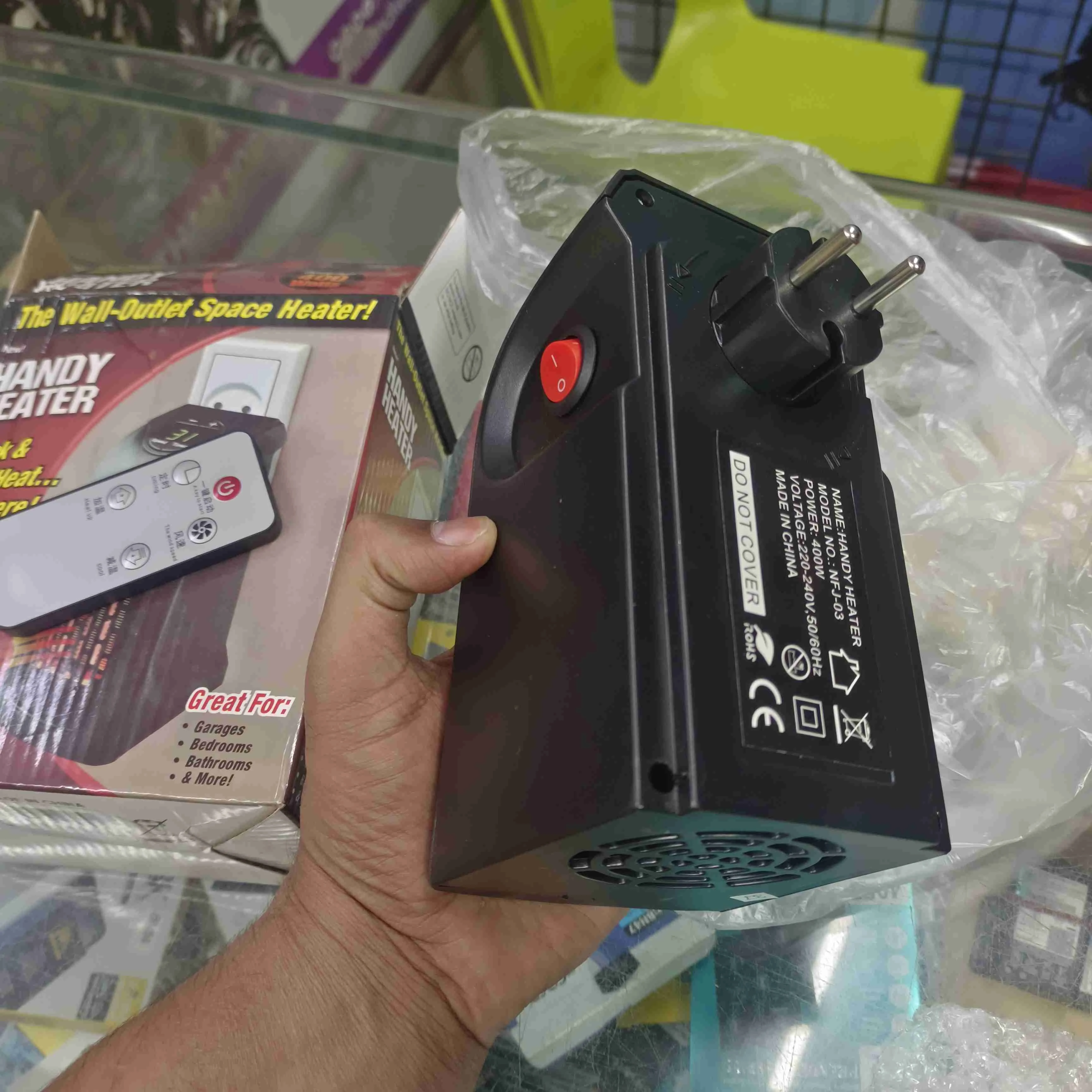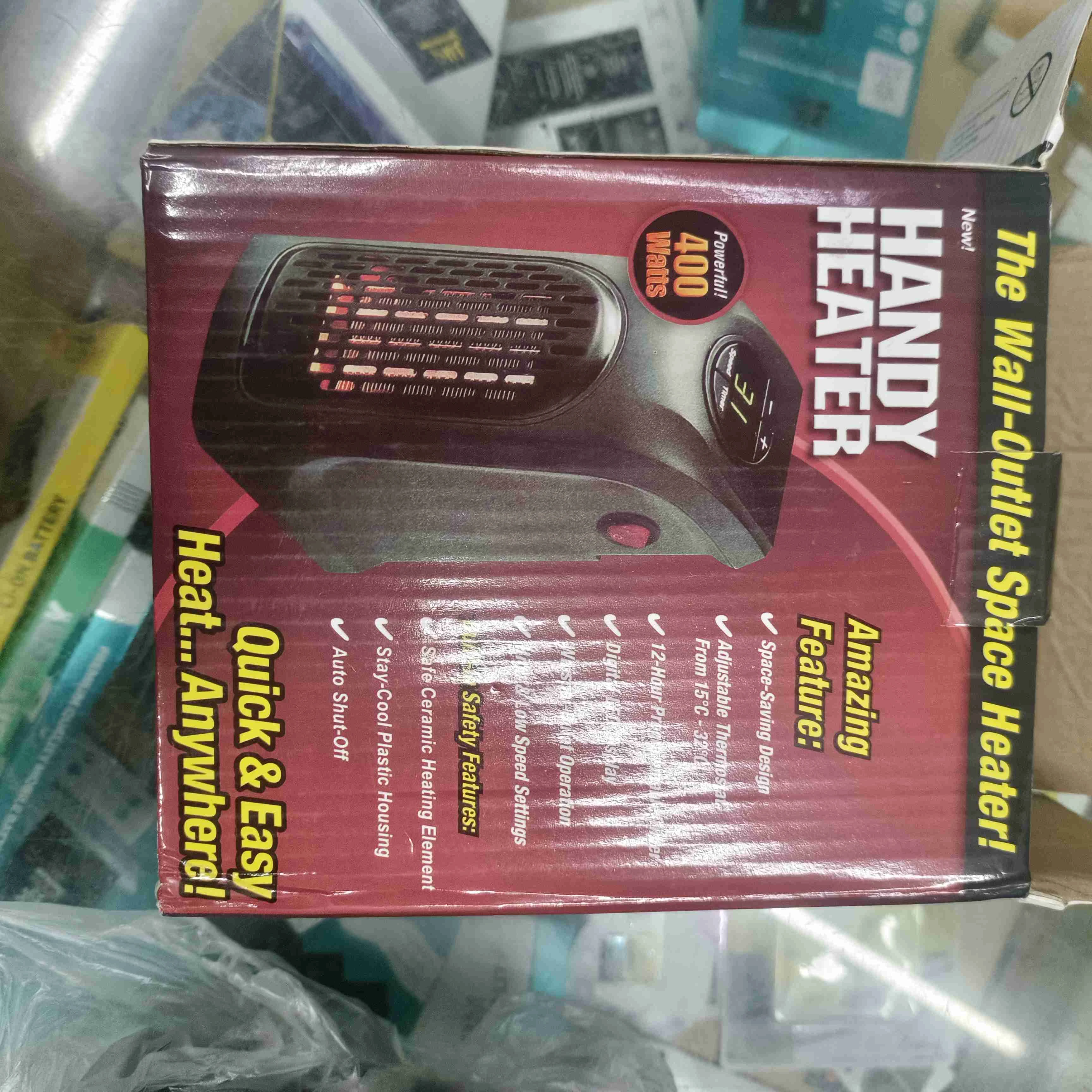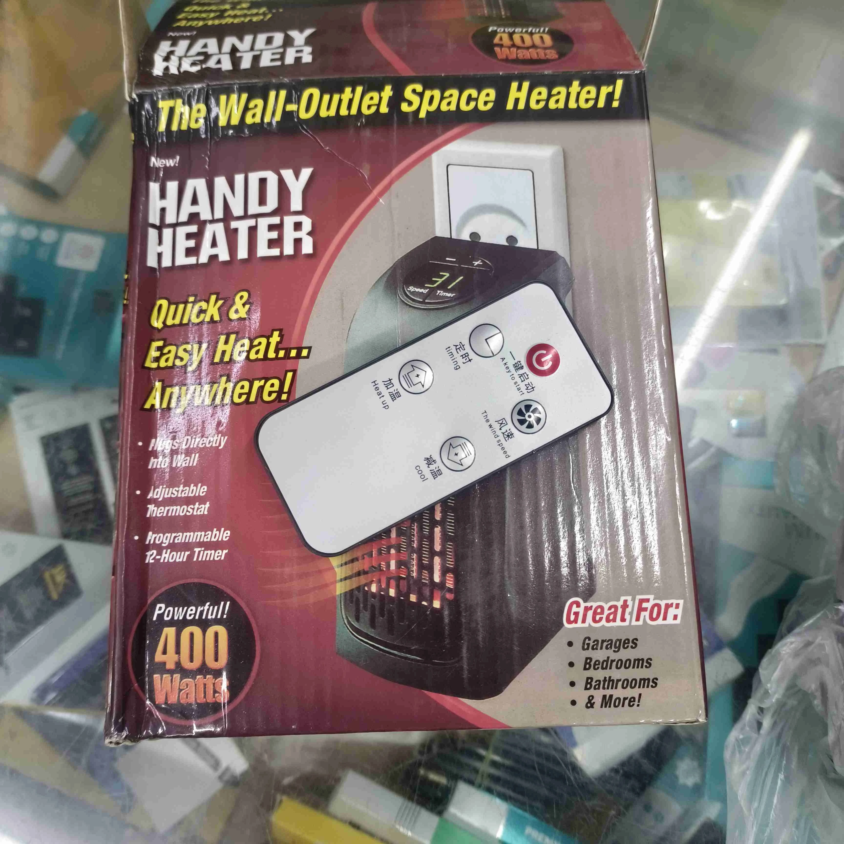 Description 400W Handy Heater Handy Heater provides quick and easy heat instantly! Just plug in and turn on. The compact design for convenience. This powerful ceramic heater heats up to 250 square feet of space. It is perfect for garages, bedrooms, bathrooms and more. Free up floor space since there are no messy cables! Handy Heater features -quiet operation and an auto shutoff timer. It stays cool to the touch,but heats up fast! The adjustable thermostat ranges from 60 to 90 degrees Fahrenheit Electric Handy Heater is easy to use just find standard plug socket, plug it in and set the temperature.You can take this Portable Heater in your bag, pocket or even in your hand at anyplace you desired. Benefits: Compact and great for travel Compact personal heater Digital temperature display & Quite Operation Automatic delay shutoff, heating Area: 250 sq. Ft Great for the bathroom, bedroom and office Stays Cool to the Touch Great For Anywhere At Home! 180 Degree Rotation: Wall-Outlet Electric Handy Heater. Comes With Free US Plug. 180 Degree Rotation Plug Amazing Feature: Digital LED Display. Programmable 12-Hour Timer Quick And Easy Heat – Instantly Plugs In And Turn On! Adjustable Thermostat 15c-32c Auto Shut Off Timer High & Low Speed Settings Frees Up Floor Space Specifications: Product Type: Wall Heater Power: 400 W Voltage: 220-240V 50/60HZ Automatic Delay Shutoff: Yes Timing function: 12 hours timer Product Description