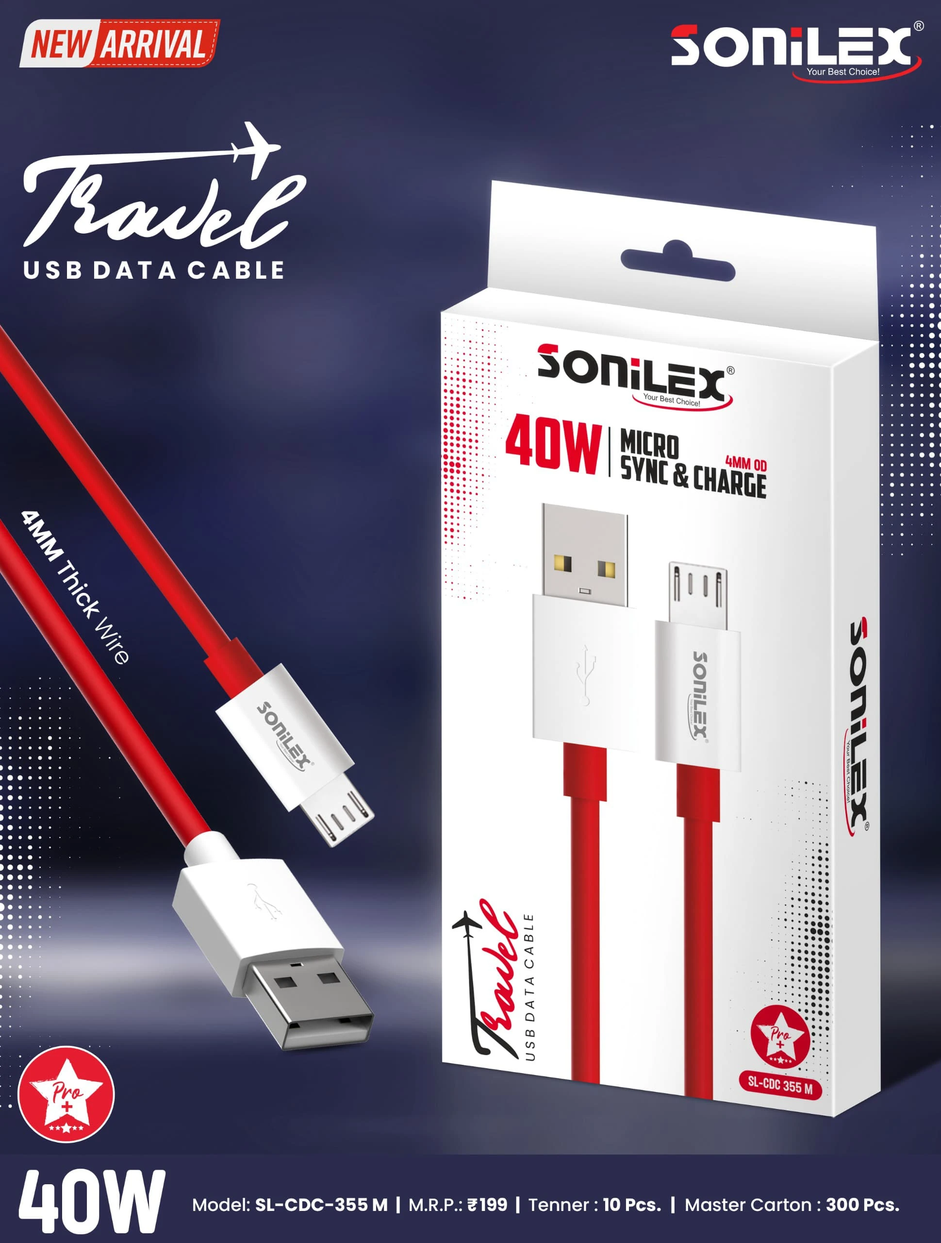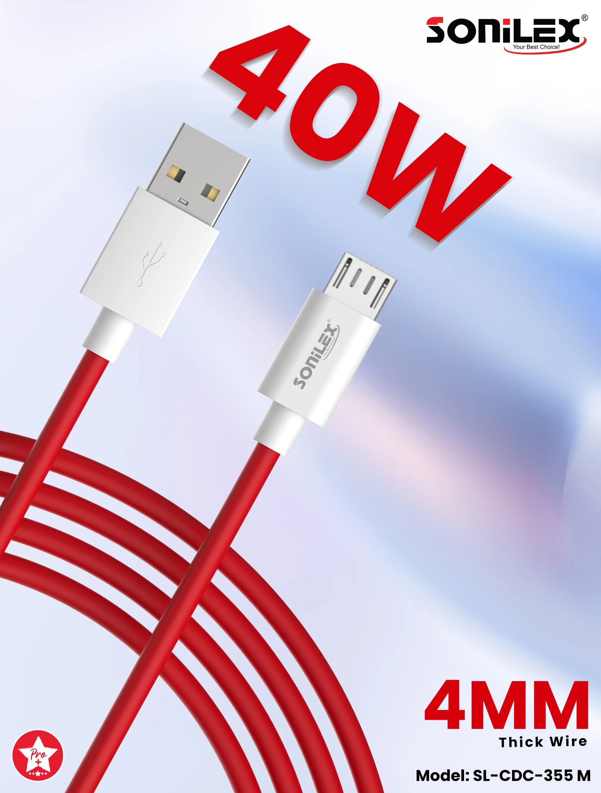 Sonilex Data Cable 40W MICRO SYNC & CHARGER 4MM OD (PACK OF 1) MICRO TYPE