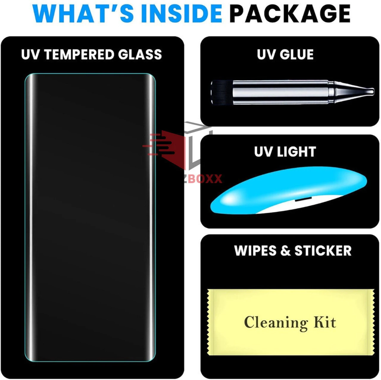 - 1 Tempered Glass , 1 Cleaning Kit