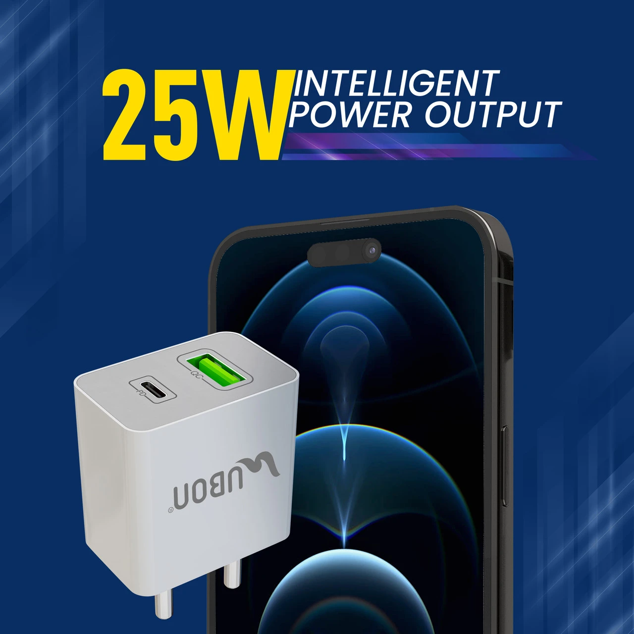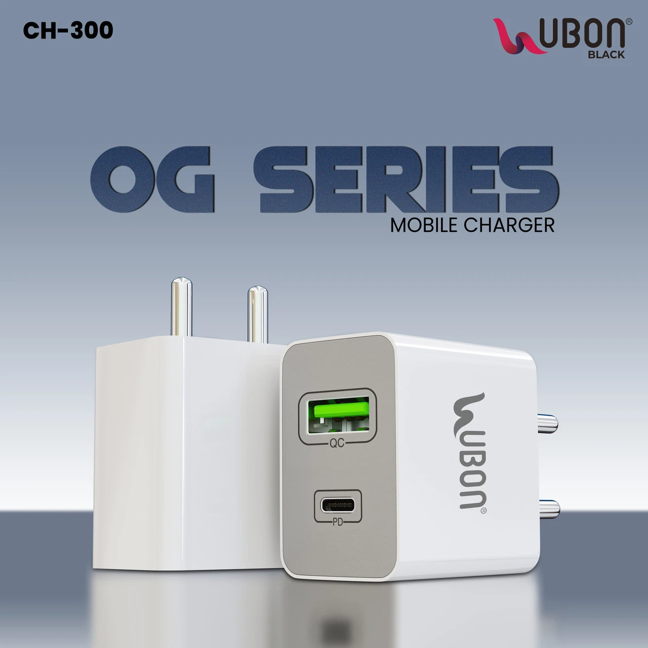 UBON CH-300 OG SERIES 25-Watt Mobile ChargerExperience superior charging speed and safety with the UBON CH-300 OG SERIES PD & QC Charger. With its advanced technologies, comprehensive protection features, and portable design, this charger is your ideal companion for staying powered up wherever you are. Salient Features of the UBON CH-300 OG SERIES 25-Watt Mobile Charger are as follows:-1. Optimized Charging Performance:- Elevate your device's charging experience with the UBON CH-300 OG SERIES charger, equipped with both PD and QC technologies. This 25-Watt charger ensures enhanced charging speed and effectiveness. 2. Advanced Safety Features:- Enjoy worry-free charging as the CH-300 comes fortified with advanced safety measures against overcharging, short-circuiting, and overvoltage. Your device remains protected throughout the charging process. 3. 25-Watt Power Output:- The charger's robust 25-watt power output supports fast charging, providing swift and efficient power replenishment for your device. 4. Intelligent Integrated Circuit:- With a smart integrated circuit, the OG SERIES charger maximizes efficiency and extends its longevity, ensuring a reliable and long-lasting charging solution. 5. Made in India with Quality Materials:- Crafted from high-quality materials and entirely made in India, the CH-300 exhibits premium craftsmanship that guarantees top-notch performance. 6. Versatile Compatibility:- The CH-300 is designed to cater to a wide range of devices, including smartphones, MP3 players, tablets, neckbands, and headphones, offering versatile charging options in a single device. 7. Portable Design:- Its lightweight and compact design makes the CH-300 a portable charging solution that perfectly fits your on-the-go lifestyle. 8. BIS-Certified Assurance:- As a BIS-certified charger, the UBON CH-300 OG SERIES guarantees adherence to the highest safety standards, ensuring secure charging for your devices. Some of the main features of the UBON CH-300 OG SERIES 25-Watt Mobile Charger are as follows:-